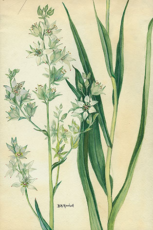 These two watercolors are of bunch-flower (Melanthium virginicum), left, and blue-hearts (Buchnera americana), right.