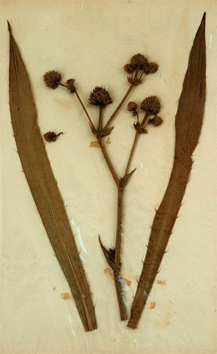 The herbarium specimen/watercolor pair on the left is indian cucumber-root (Medeola virginiana). On the right is rattlesnake-master (Eryngium yuccifolium).