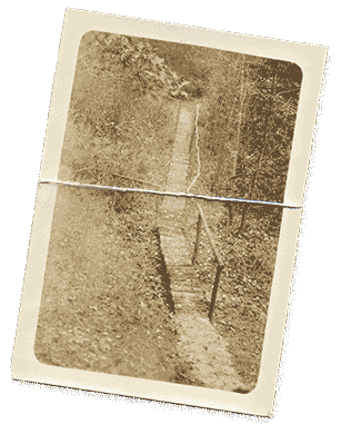 Photo of log steps and bridge constructed by WPA workers in Petersburg Legends Historical Park and Nature Conservancy.
