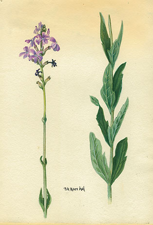 These two watercolors are of bunch-flower (Melanthium virginicum), left, and blue-hearts (Buchnera americana), right.