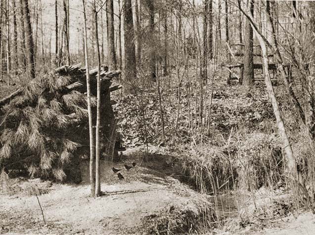 This photo shows a blind built in the 1940s in Lee Memorial Park to allow birders to observe or photograph birds in their natural habitat.